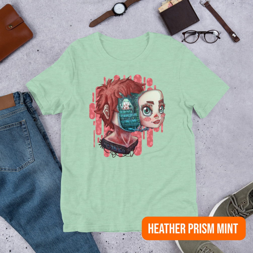 Heather Prism Ice Blue is 52% Airlume combed cotton / 48% polyester rest of the Prism colors are 99% Airlume combed and ring-spun cotton and 1% poly.